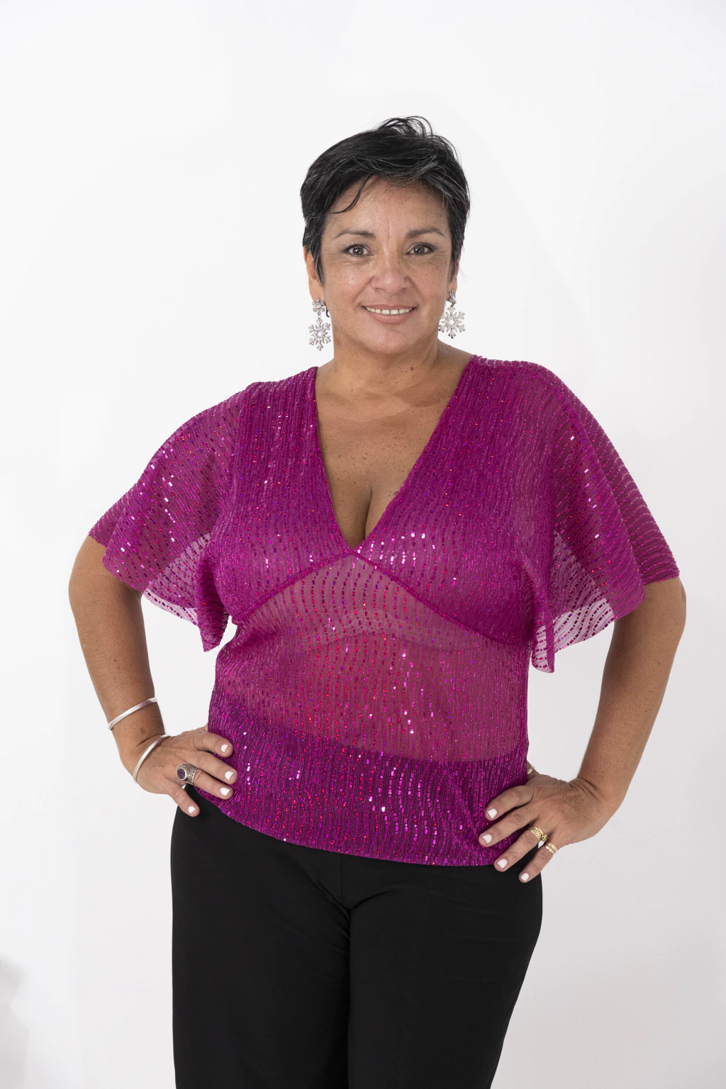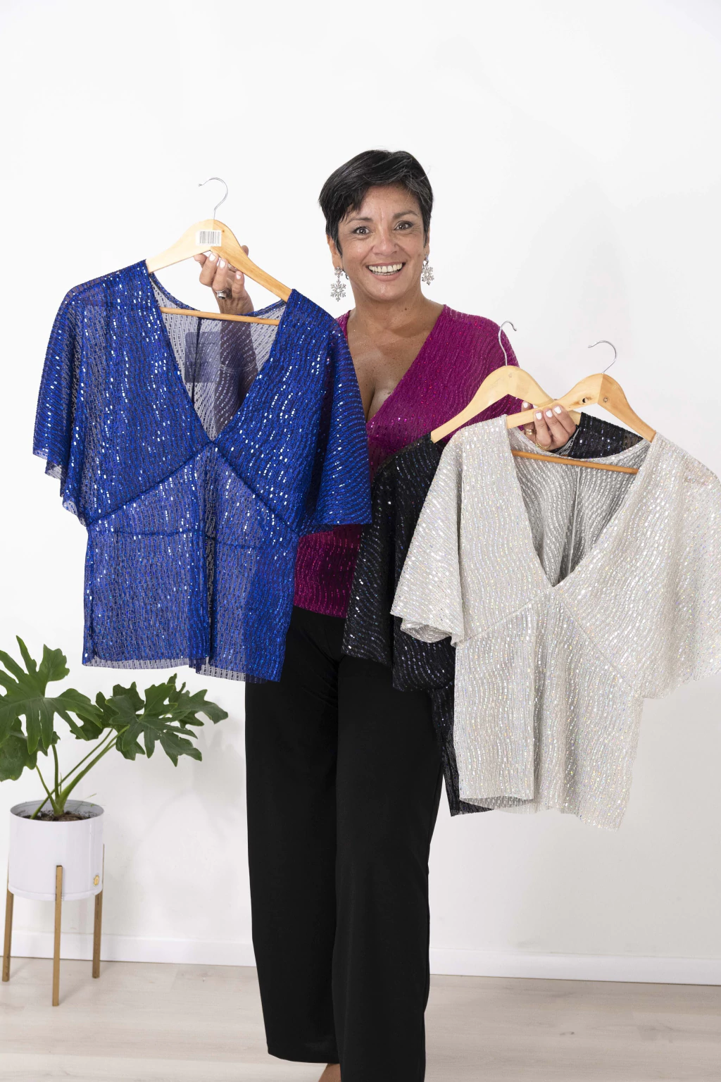 Transforma tu look con la BLUSA EDITH, un modelo sensual y atractivo, con brillos, arreglada, muy elegida para usar con prendas bien altas.  Un hermoso diseño para eventos.
