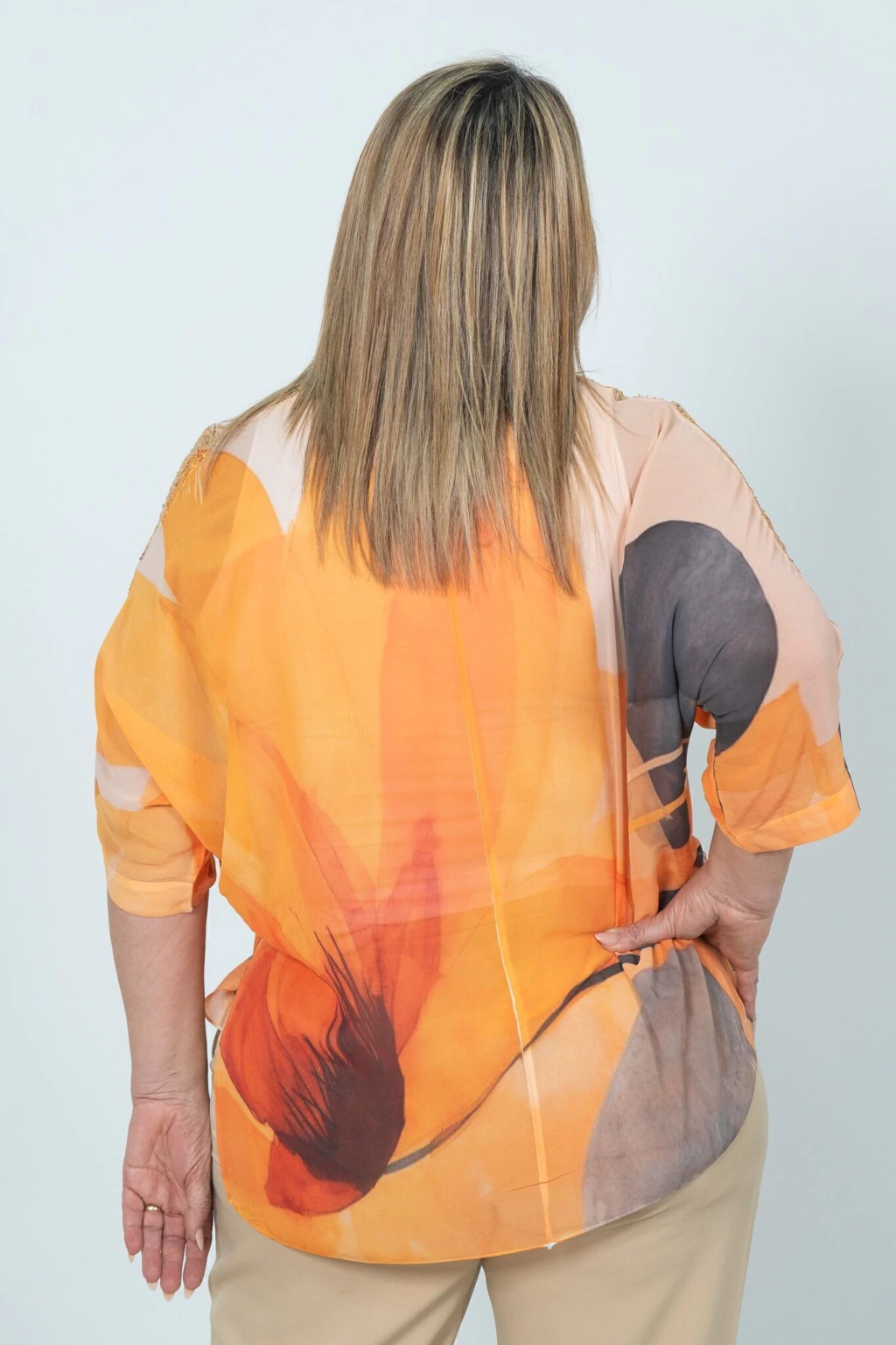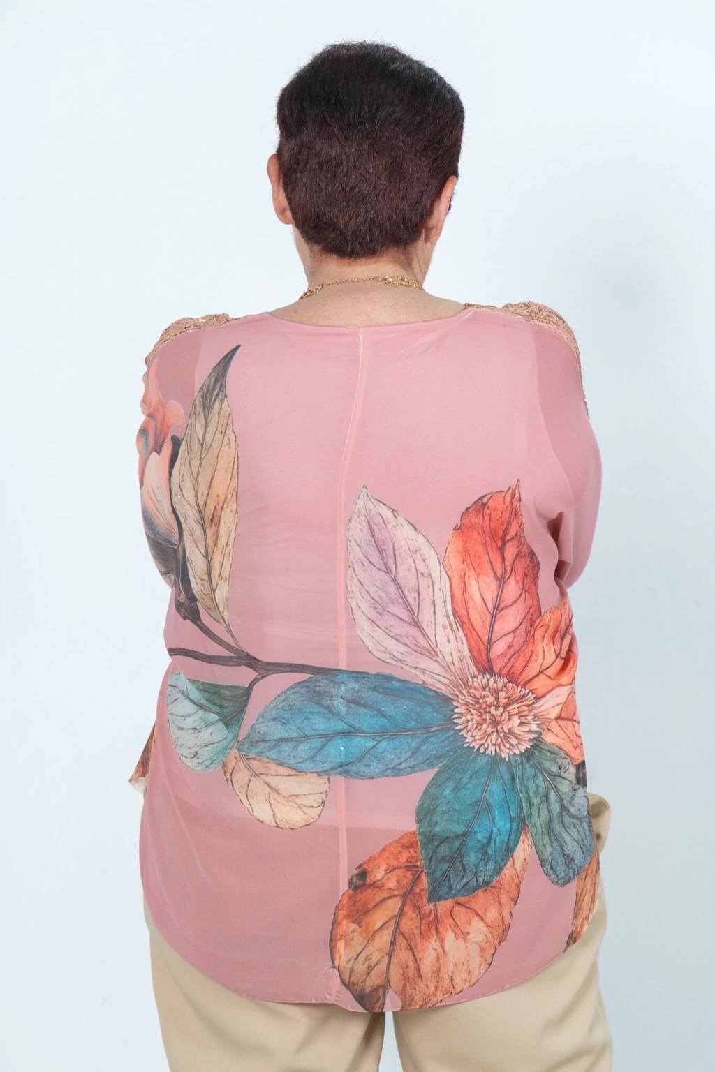 Blusa de gasa sublimada, mangas amplias con detalles en lentejuelas. Estampes únicos y originales.