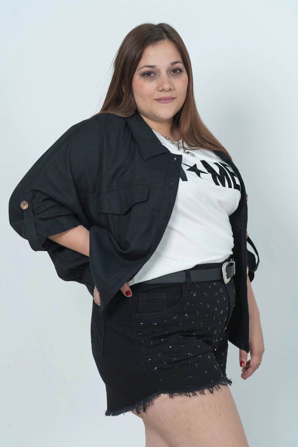 Confeccionada en lino, una tela liviana y suave al tacto, esta campera cuenta con cuello camisero, bolsillos delanteros con tapa y mangas 3/4 que podés ajustar con tiras y botones para un look más desenfadado. El ruedo elástico aporta un calce cómodo y favorecedor, destacando la silueta sin perder frescura. Ideal para entretiempo o para complementar tus looks casuales con un toque chic.