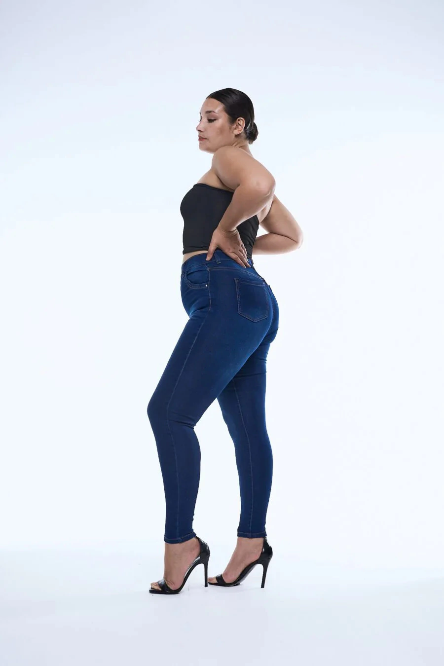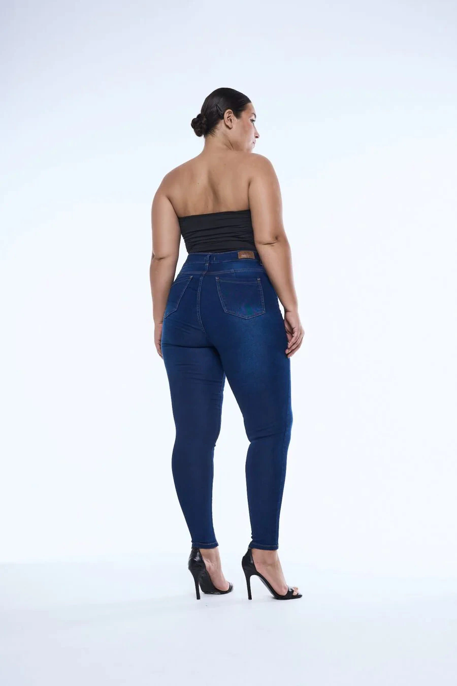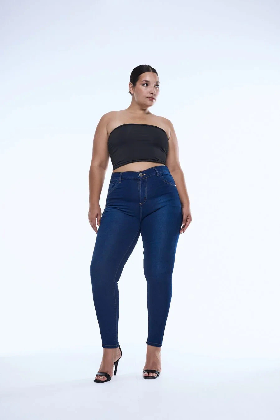 Diseño de jean de tela elastizada, azul, excelente calce, tiro alto
