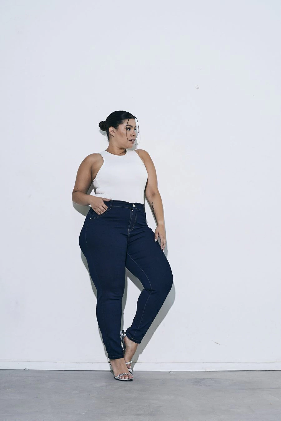 Diseño de jean elastizado, buen calce, tiro alto, color azul, versátil. Un pantalón para usar con todos tus conjuntos