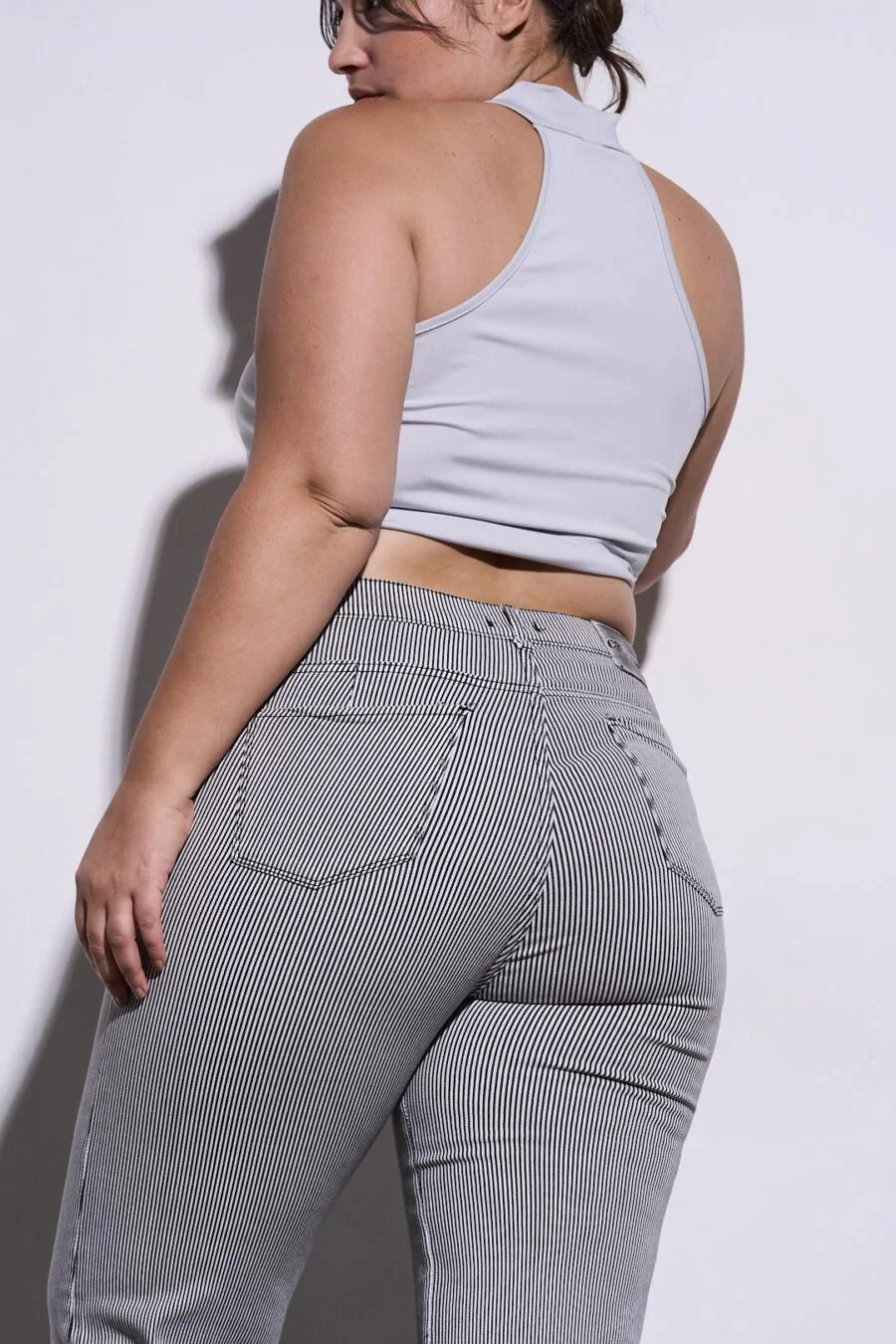 Este pantalon rayado, es original de tela elastizada, lineas en color negro,  muy versatil para usar con diversos tipos de prendas