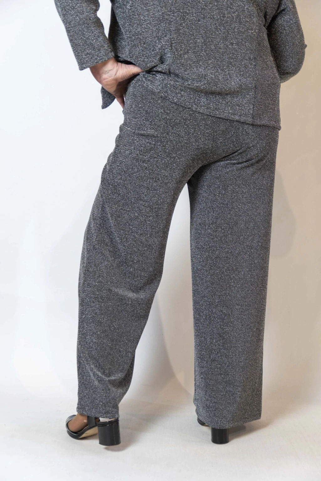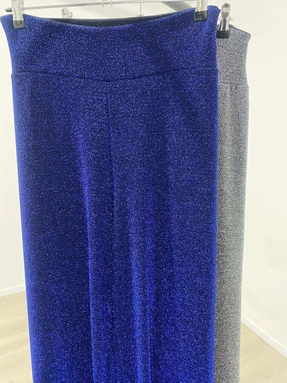 Moderno pantalón de lurex, elastizado, brilloso, tiro alto, piernas anchas, cintura elástica para mayor comodidad. Un diseño elegido para realzar y completar tus outfits