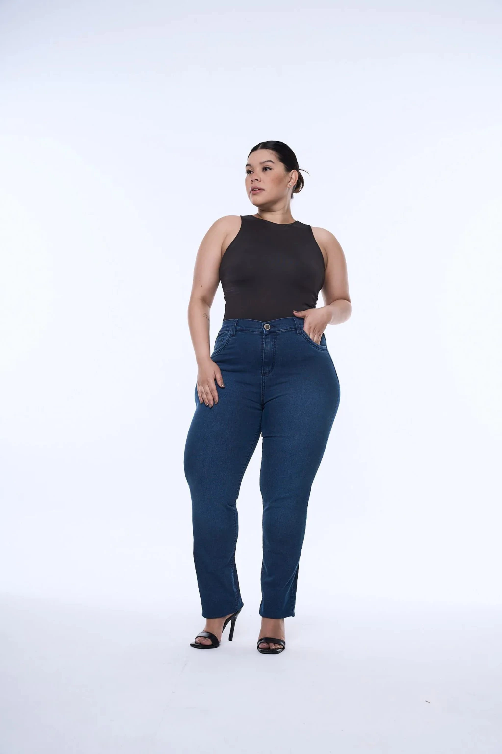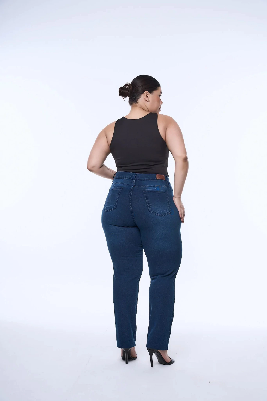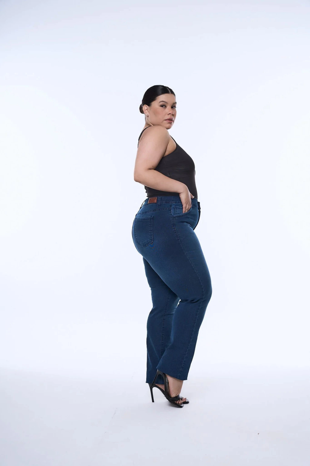 Diseño de jean de tela elastizada, excelente calce, tiro alto