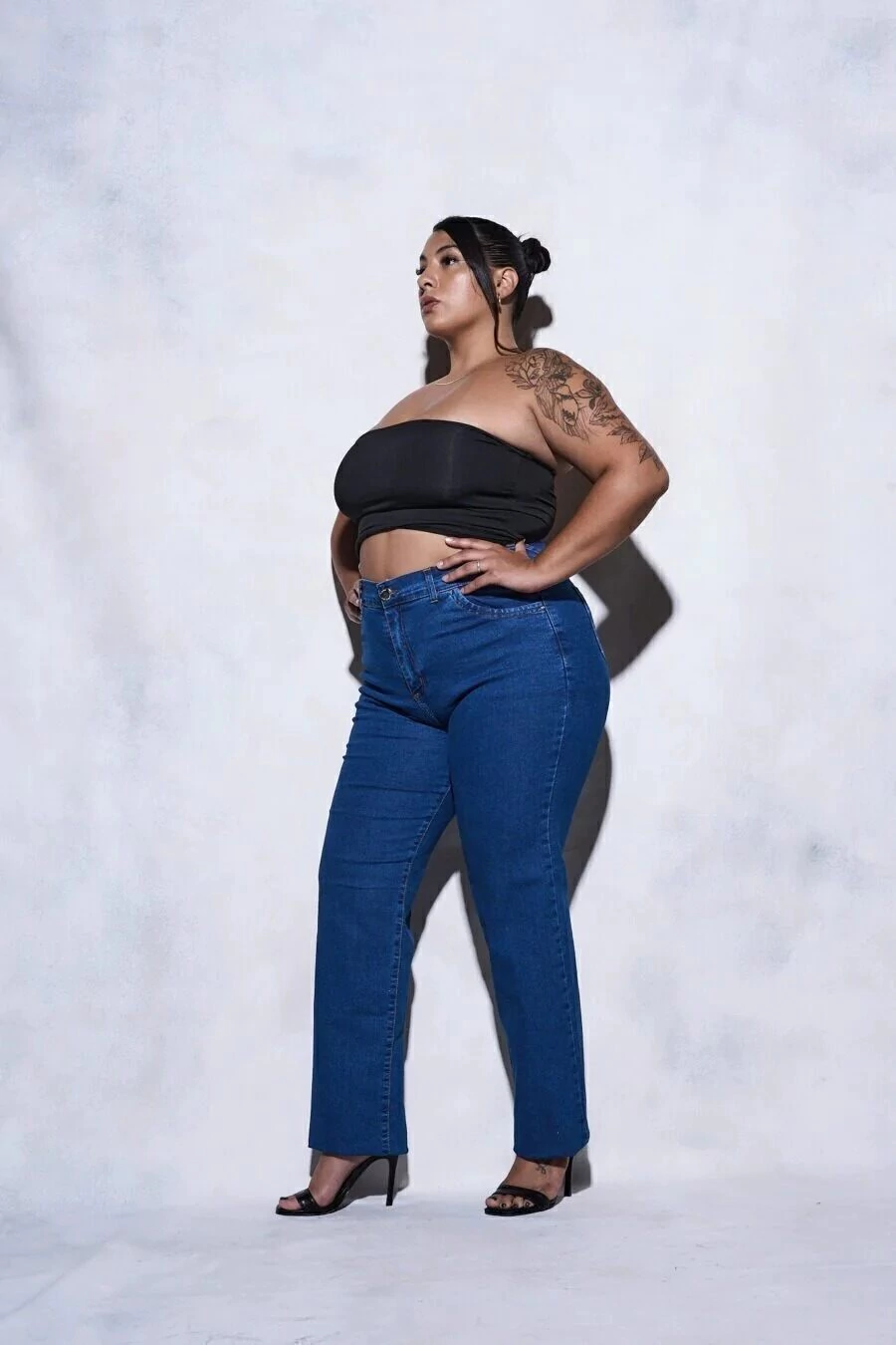 Diseño de jean de tela elastizada, excelente calce, tiro alto