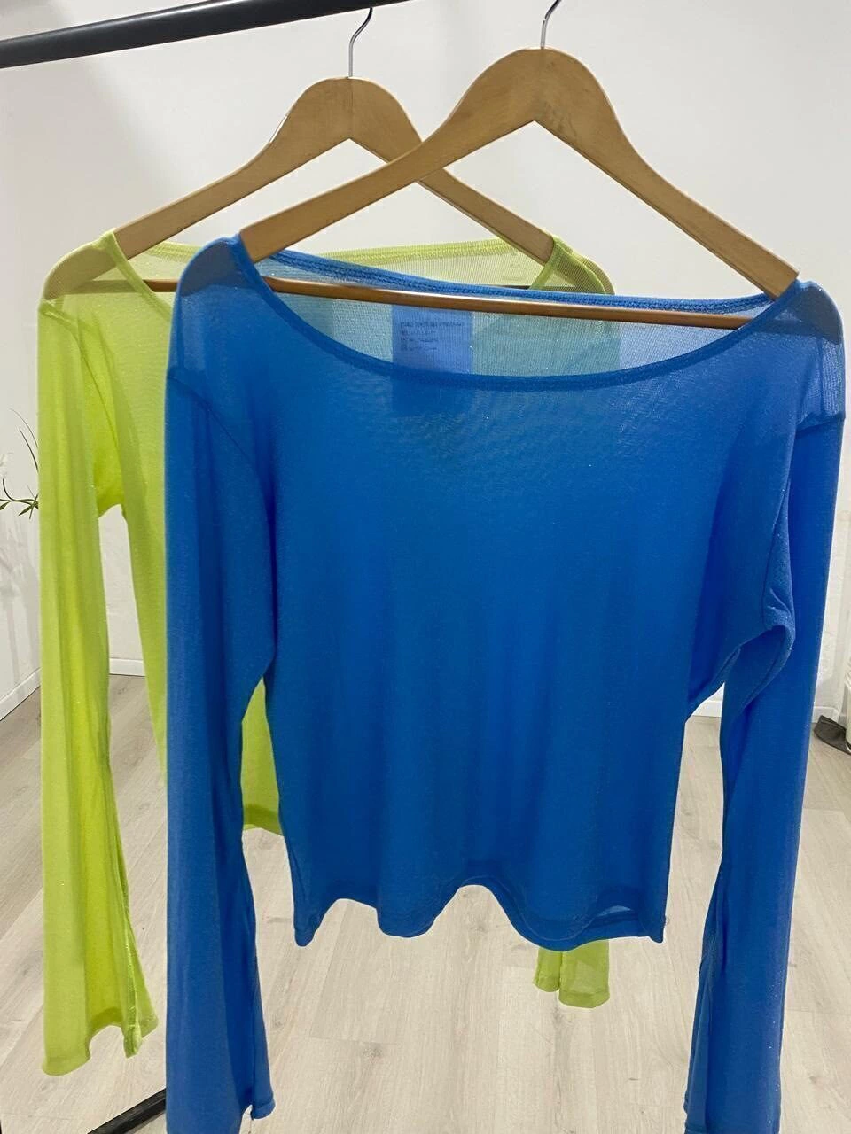 Esta canchera y llamativa remera de tul con lurex se roba todas las miradas con su transparencia, un toque justo de brillo y sus mangas oxford con un sutil tajo en ellas. Super elastizadas, varios colores para resaltar tus ouffits.
