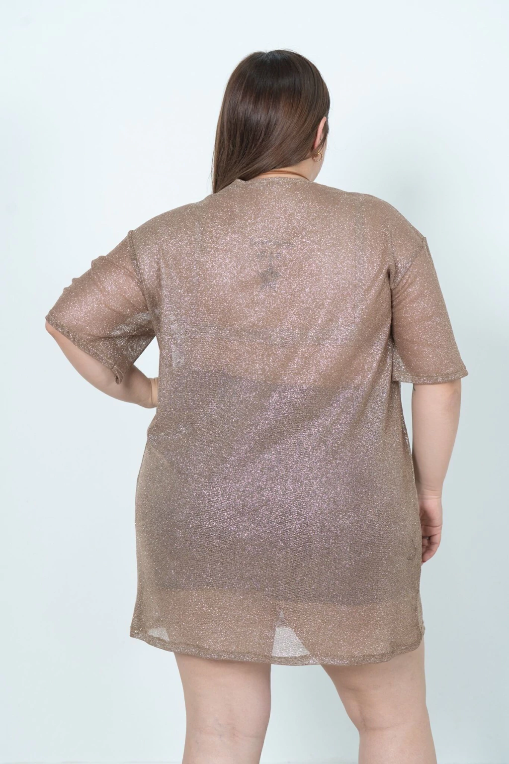 Remeron de glitter, amplio, mangas cortas, versatil para combinarlo con cualquier calzado.
