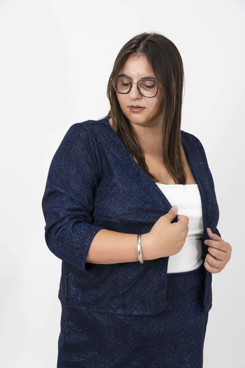 Transforma tu look con el SACO MALIBU, arreglado. Un modelo muy original y novedoso. Sus brillos completan tu conjunto dándole estilo y elegancia.