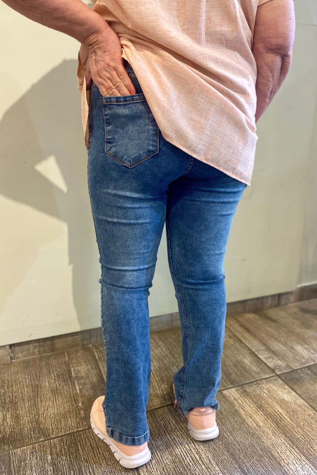 Estilo de jean elastizado, tiro alto, excelente calce. Completa tu look con esta prenda que tiene que estar entre tus infaltables
