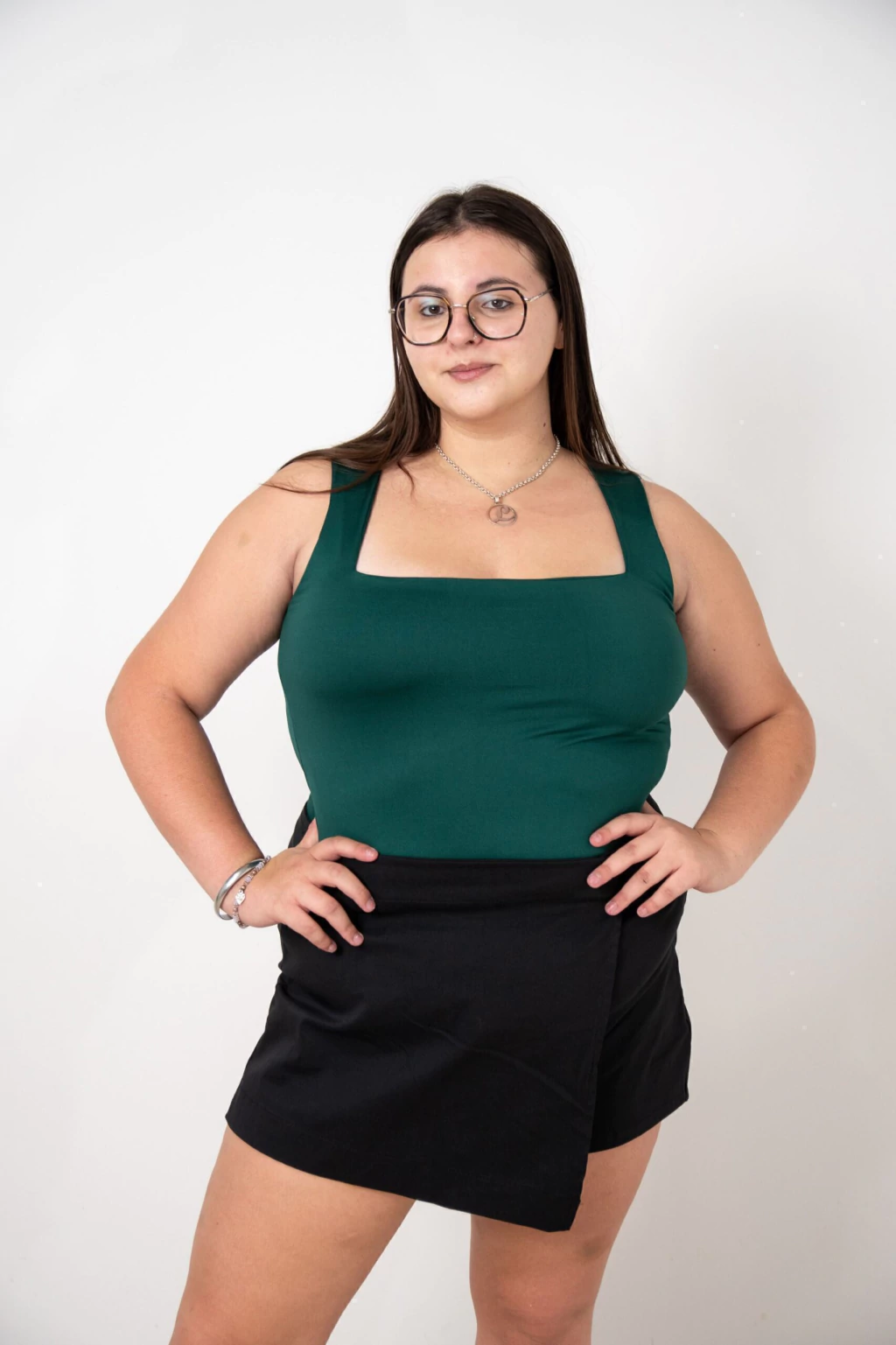 Skort de bengalina, elastizado, cruzado en el frente, logrando un efecto elegante y funcional.  Detalle de hebilla, con un toque moderno, ideal para looks de noche, casual y urbano