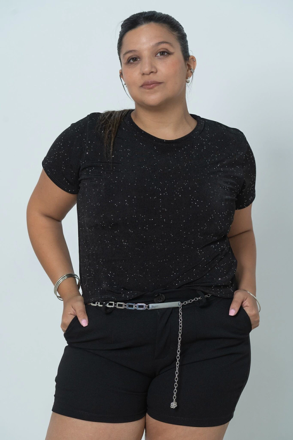 Top de lurex, con sutiles destellos plateados que evocan un cielo estrellado. Perfecto para la noche o salidas especiales, combinalo con pantalones sastreros, faldas satinadas o jeans oscuros para un look más descontracturado. Se recomienda lavar a mano con agua fría y jabón neutro. No usar blanqueador. Secar extendido a la sombra.