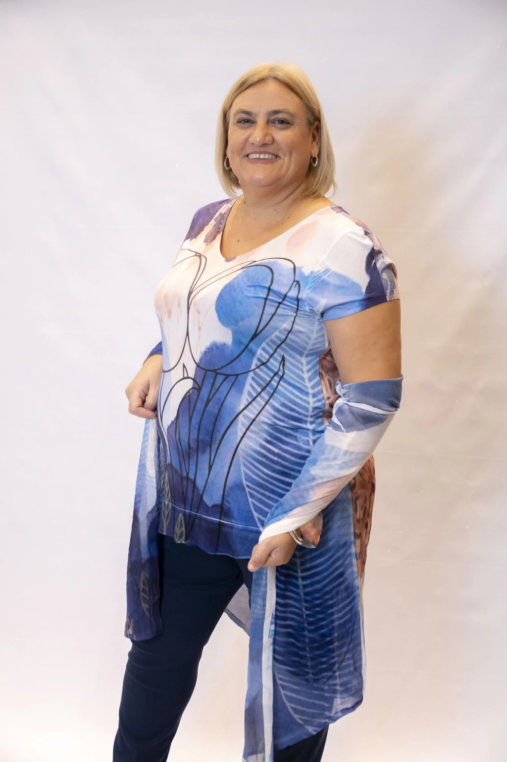 Remera sublimada manga corta de modal, super practica y elastizada, y camisa de gasa mangas 3/4, un conjunto ideal que no te puede faltar